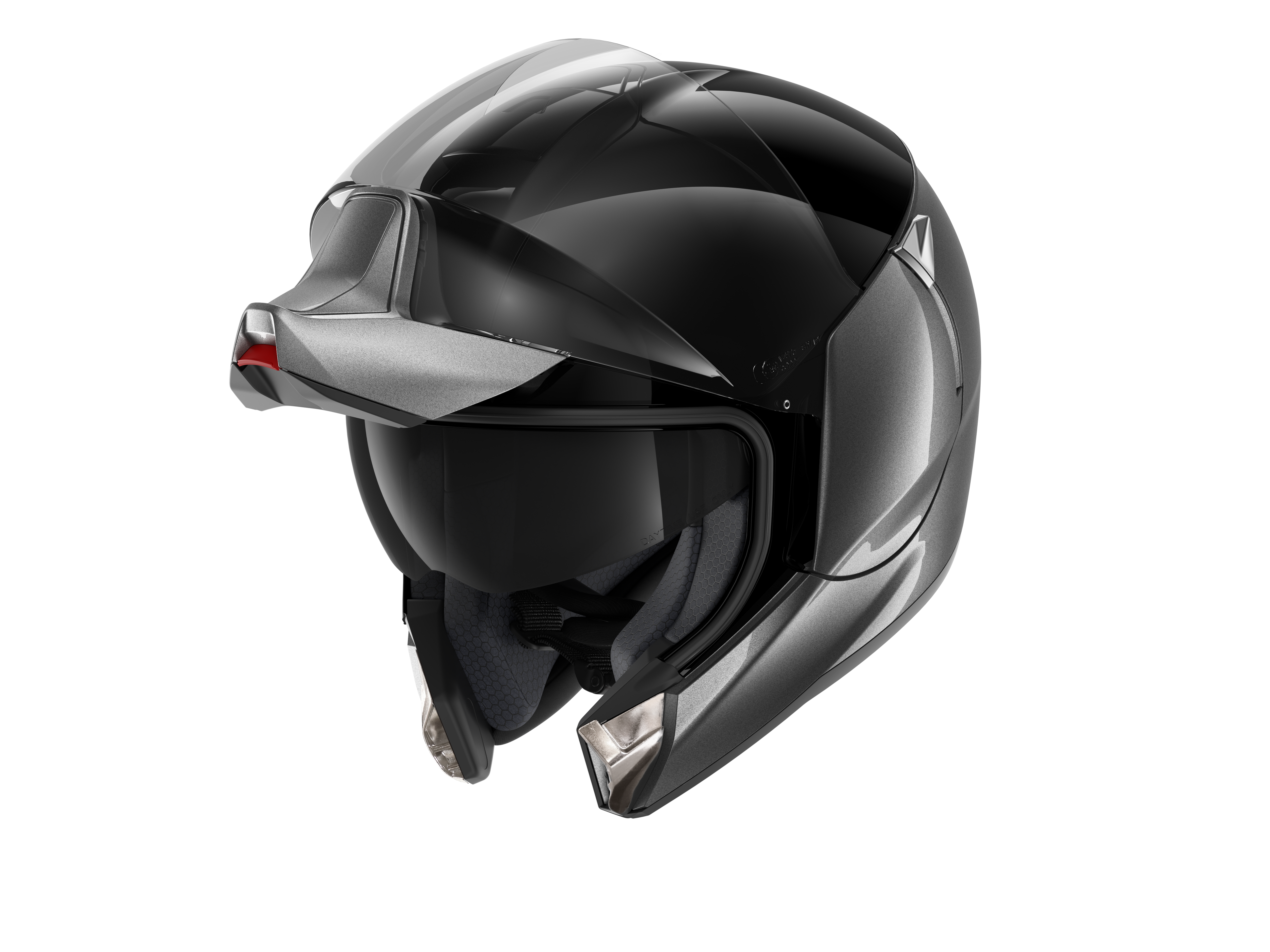 The EVO-ES embodies all of SHARK’s expertise in the design of modular helmets for daily users seeking to enjoy optimal protection whether in the jet or integral position. Equipped with the patented “Auto-up / Auto-down” system, the visor automatically lifts when the rider raises or lowers the chin guard for optimal convenience.
