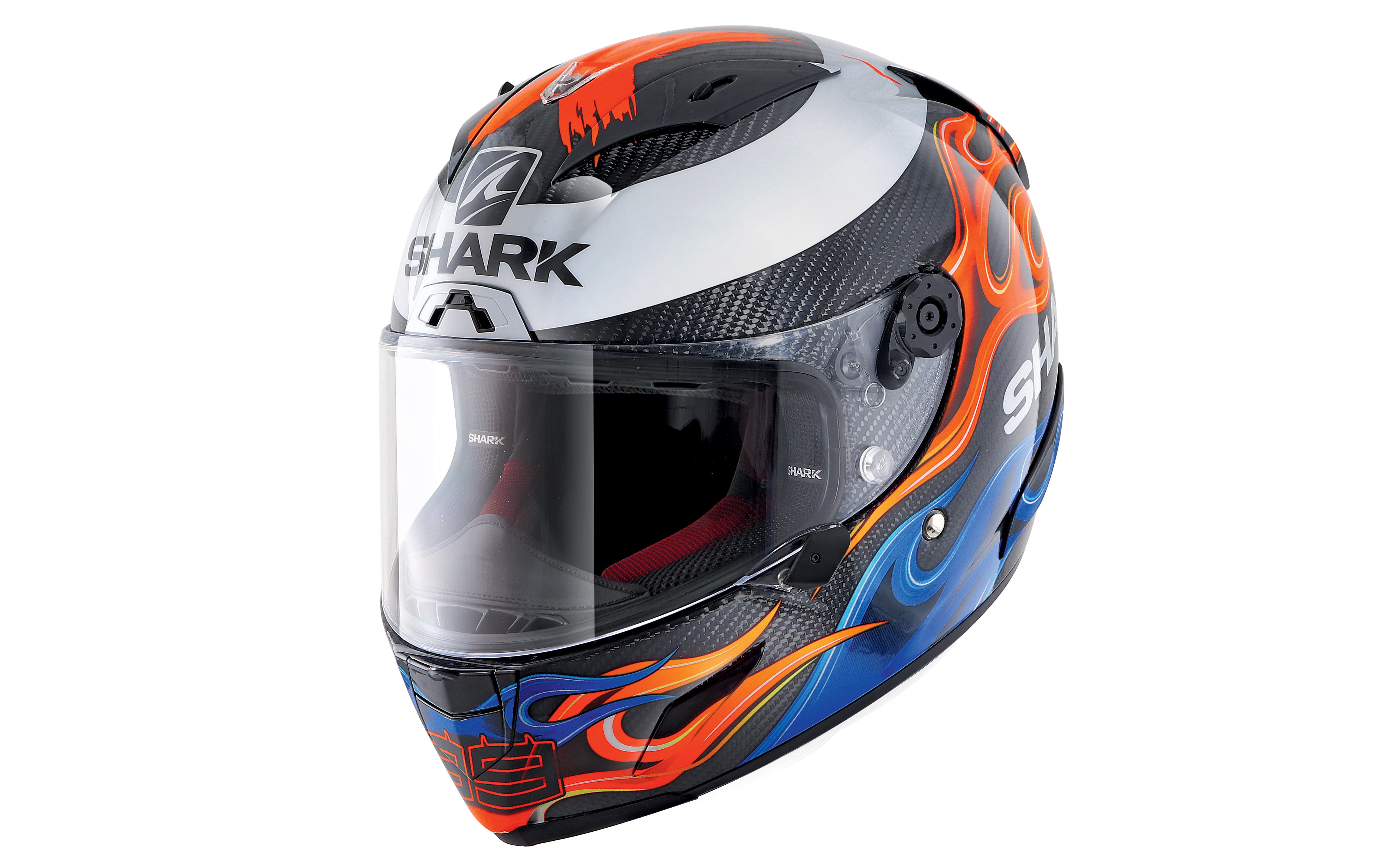 The Race-R Pro is constructed from carbon aramid fibre, and also available in a carbon version with exposed carbon fibre details. Developed in conjunction with SHARK Helmets-supported riders, the Race-R Pro meets all the demands of first-class racers; stability, lightness, comfort and ventilation.