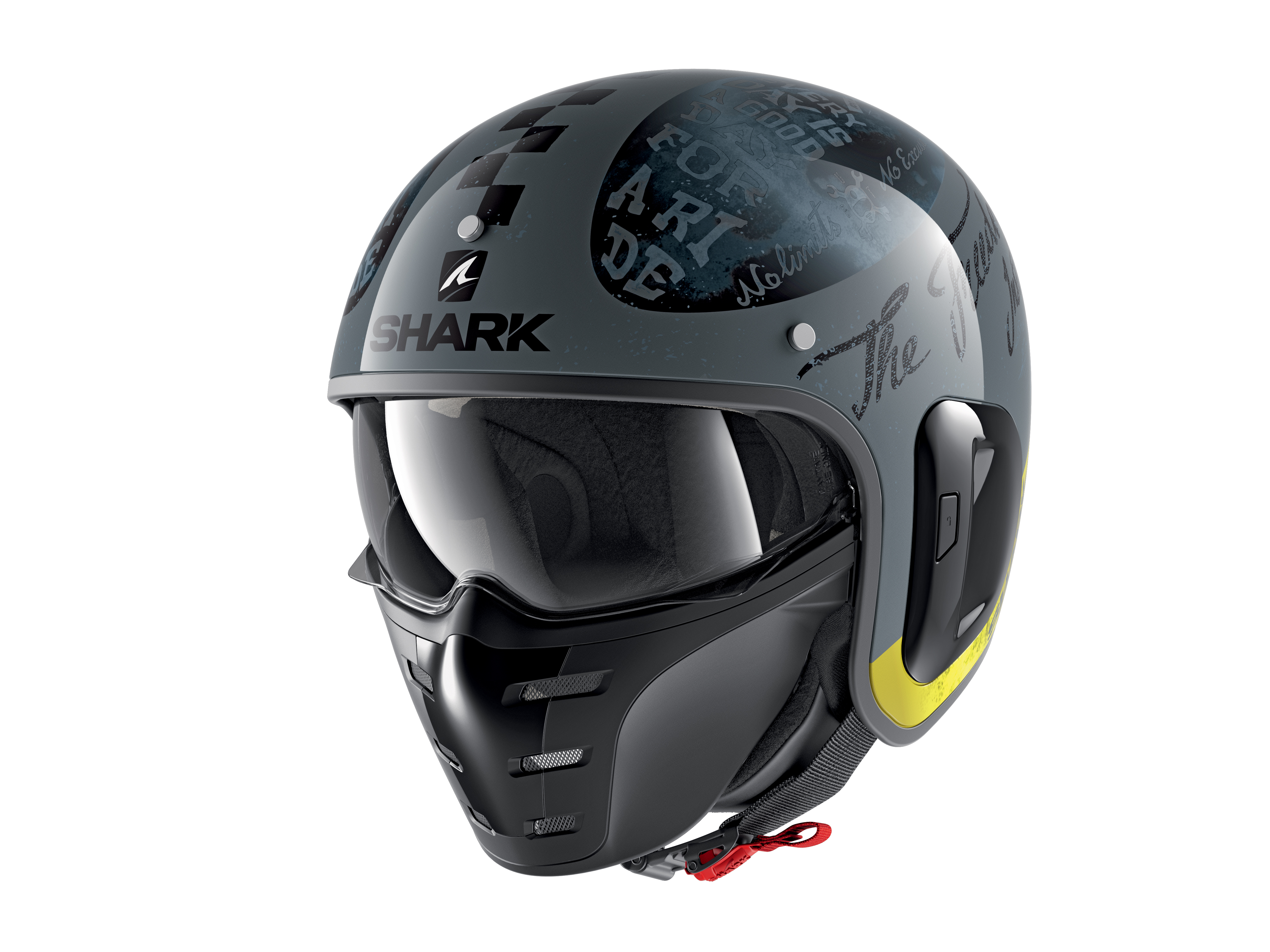Inspired by the iconic DRAK helmet, the S-DRAK range – made up of the S-DRAK 2 with a multiaxial glass fibre shell and the S-DRAK Carbon 2 with a carbon fibre shell – combines retro styling with modern technology. With sharp-edged lines and vintage details, the S-DRAK range boasts a distinctive, unconventional look perfect for the café racer or custom retro rider. There are two shell sizes available, both designed to fit the skull as closely as possible for a comfortable and secure fit. Both models have a retractable internal visor along with an air intake deflector, as well as a removable and washable interior lining, easily detachable face mask with mesh ventilation.