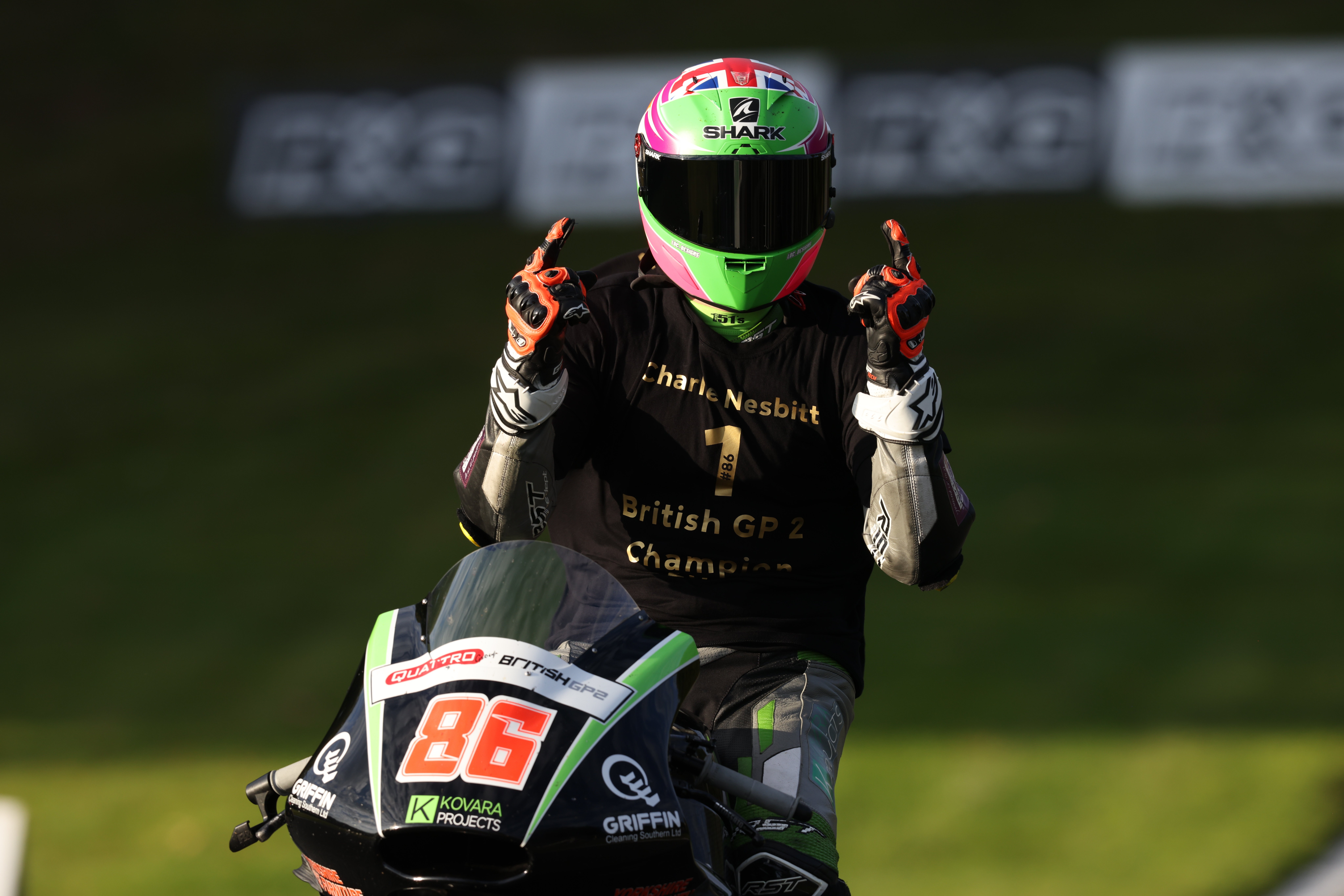 SHARK Helmets-sponsored rider, Charlie Nesbitt, won his second British Championship title at the weekend, claiming the British Supersport GP2 Championship for 2021 with his class win at Oulton Park.