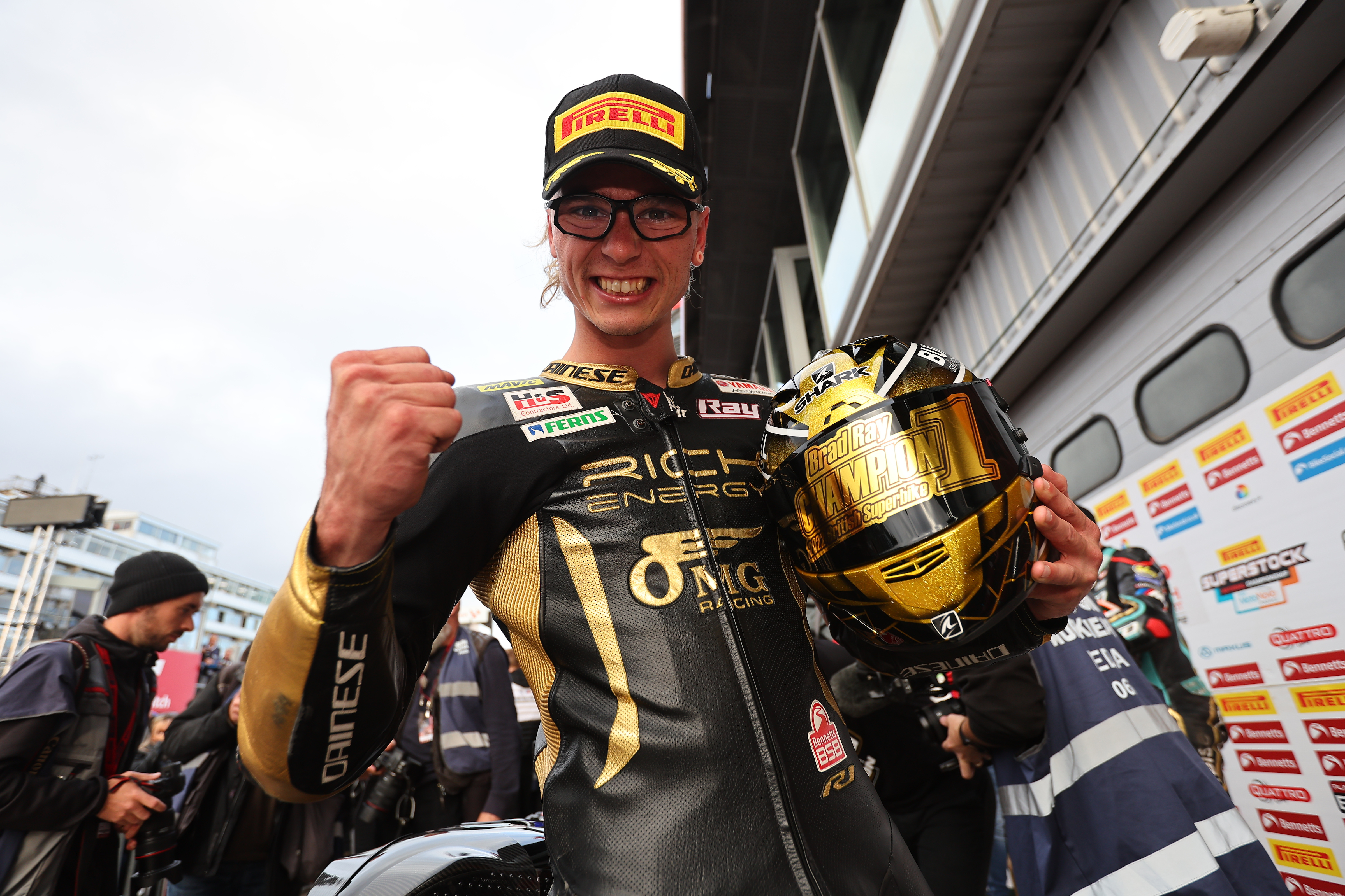 Bradley Ray entered the concluding round with a 66 point lead over his closest rival, ready to battle for the championship title in the final three races at the Bennetts British Superbike Showdown. After just one race Brad claimed the title by a focused run to fifth, securing 11 points which put the championship out of Glenn Irwin and Tommy Bridewell’s reach.