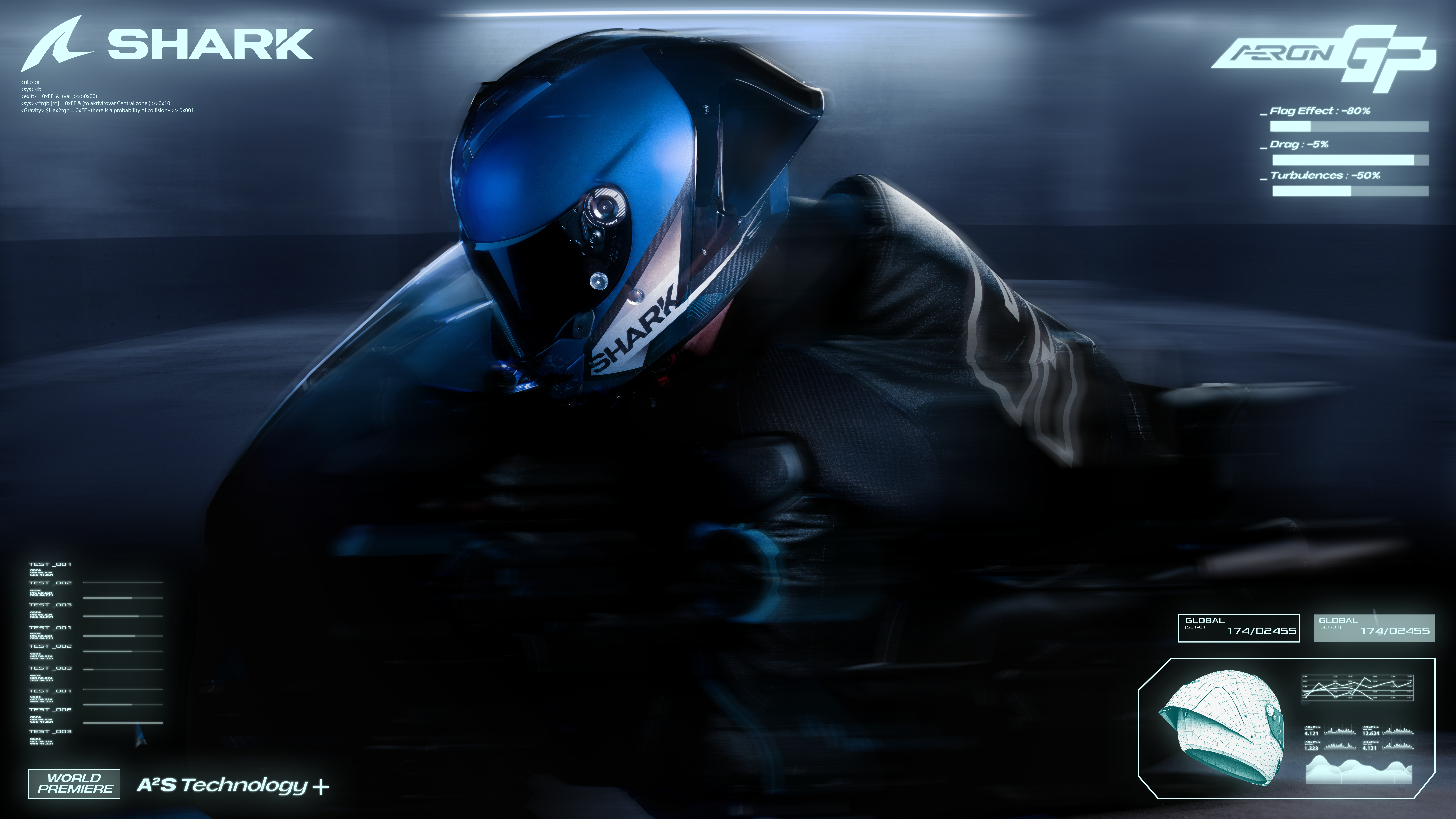 Marjorie BAUDET, General Manager of SHARK said: “SHARK’s genetics are made by racers for racers. It was obvious that our new flagship should be closely linked to this leitmotif which has driven us for 30 years. The development of this new helmet is its quintessence, and this campaign was entirely targeted to highlight the most successful product ever made at SHARK, the AERON GP. Offering the best in aerodynamics, body fit and style for our daily Racers”.