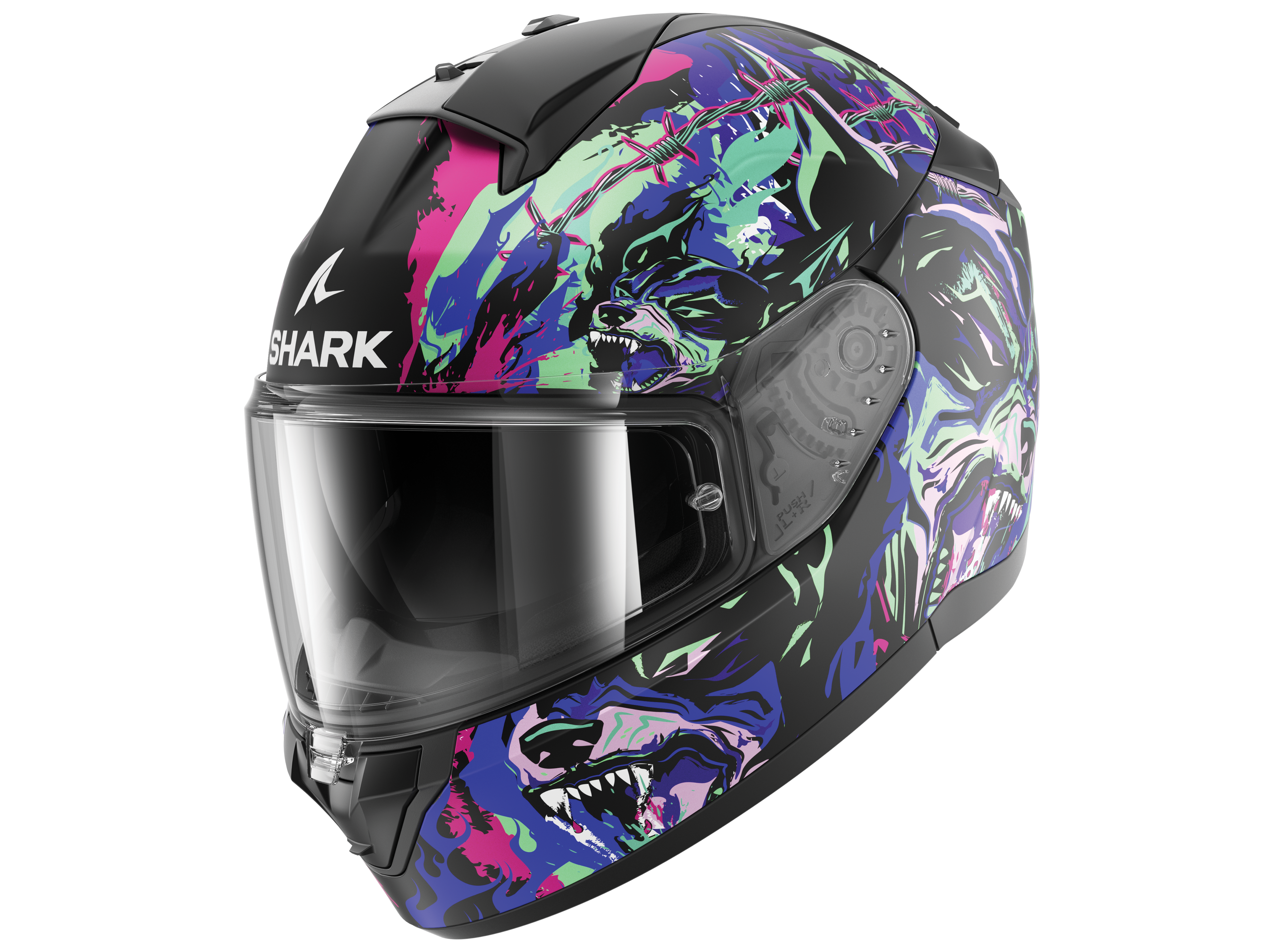 The third-generation D-Skwal helmet combines an aggressive new look with state-of-the-art features. Made from a high-impact LEXAN™ polycarbonate shell and available in two sizes, it includes SHARK’s patented rapid, no-tool visor removal system for easy detachment of the Optical Class 1 anti-scratch visor with Pinlock® 70.